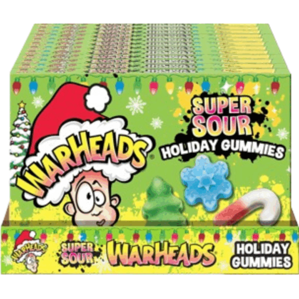 Warheads Sour Gummies! Assorted Holiday shapes with Three Sour Flavors 12x3oz quantity