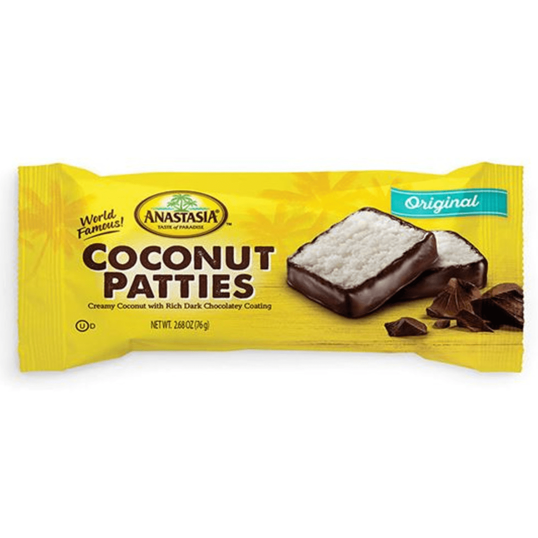 Smooth, shredded coconut dipped in a rich dark chocolate coating. Anastasia Coconut Patties are a delicious tropical tasting confection!
