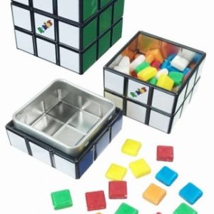Popular 80’s 3D icon is back as a tin box replica! This tin is filled with colorful fruity sours in all six panel colors.