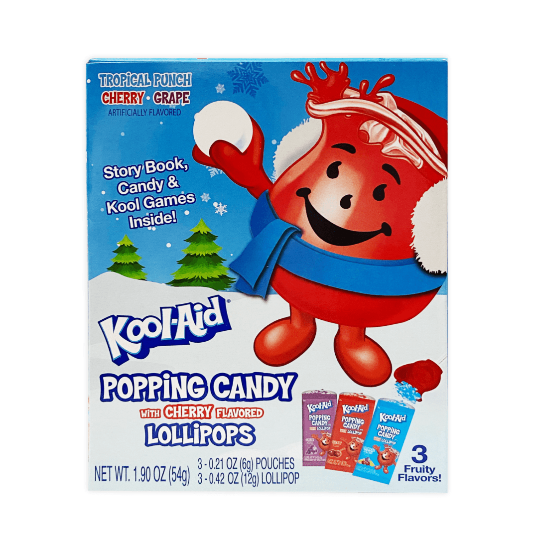 Each storybook contains 4 pouches of delicious popping candy in top Kool-Aid flavors of of Tropical Punch, Cherry & Grape in Popping Candy. Storybooks make a great stocking stuffer with games on inside and back cover.