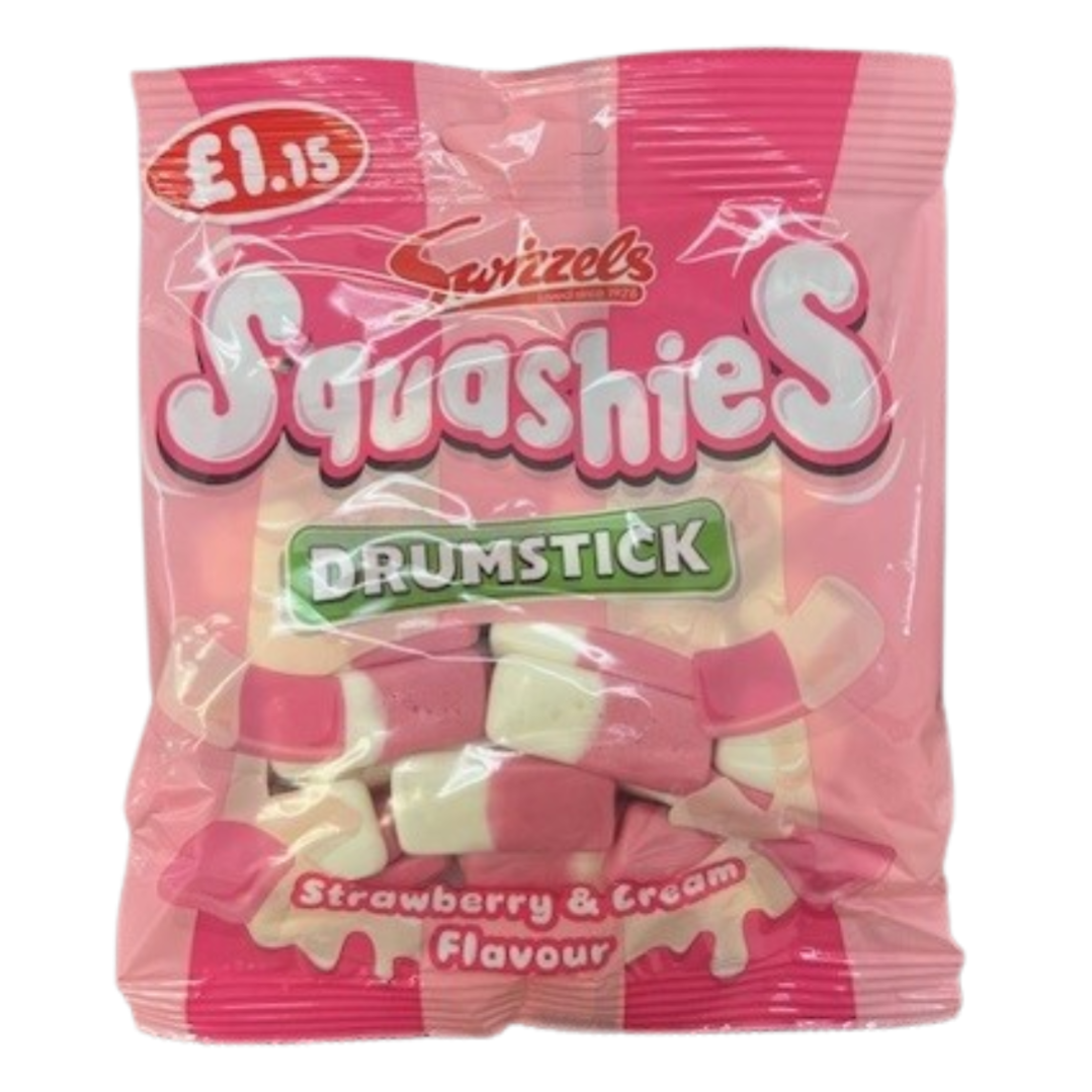 Swizzels Squashies Drumstick Strawberry and Cream Price Marked British Peg Bag 12x120g